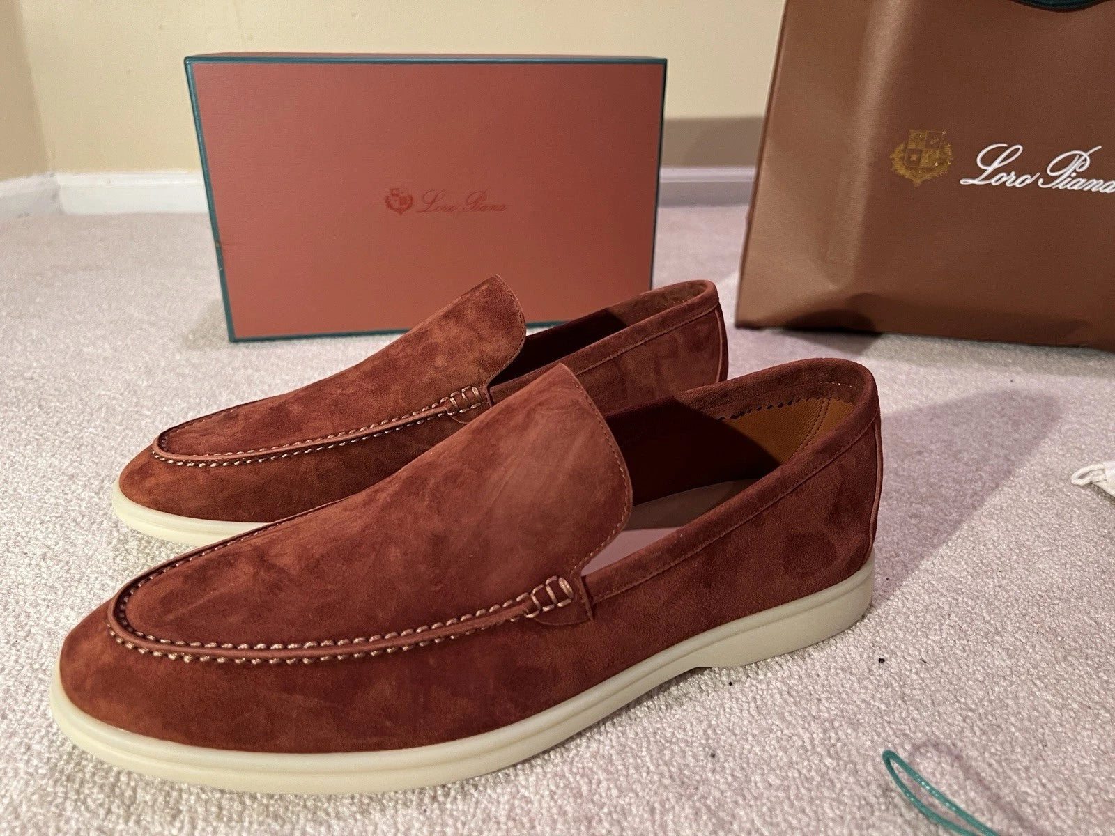 Loro Piana Suede Summer Walk Loafers Dried Red Men's and women's shoes